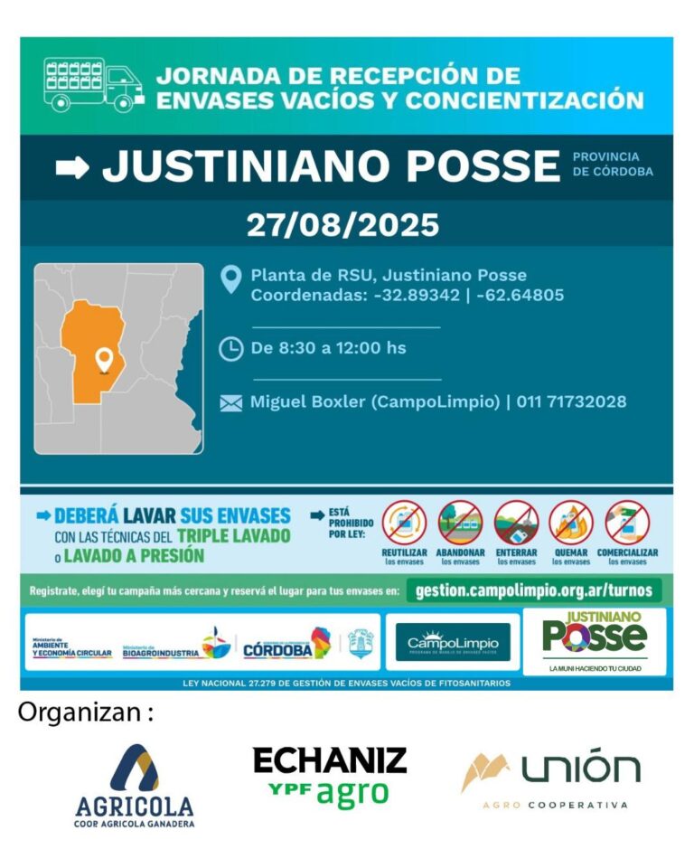 Jornada de recepción de envases vacíos y concientización MIÉRCOLES 27 de Agosto Planta de tratamiento de Residuos Sólidos Urbanos de...