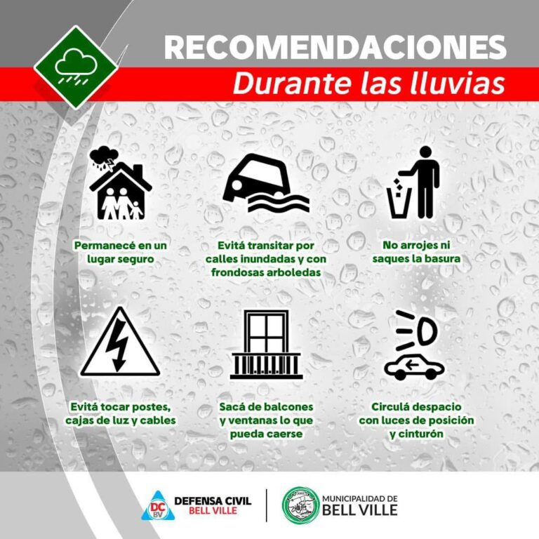 Recomendaciones importantes durante las lluvias Defensa Civil Bell Ville te recuerda seguir estos consejos: Permanecé en un lugar seguro. Evitá...
