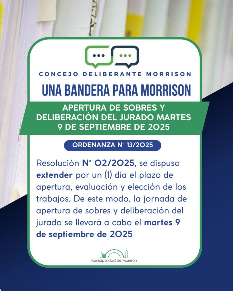 Concurso “𝐔𝐧𝐚 𝐁𝐚𝐧𝐝𝐞𝐫𝐚 𝐩𝐚𝐫𝐚 𝐌𝐨𝐫𝐫𝐢𝐬𝐨𝐧”: cierre de presentación de trabajos y fecha de elección La 𝐌𝐮𝐧𝐢𝐜𝐢𝐩𝐚𝐥𝐢𝐝𝐚𝐝 𝐝𝐞 𝐌𝐨𝐫𝐫𝐢𝐬𝐨𝐧 𝐲 𝐞𝐥...