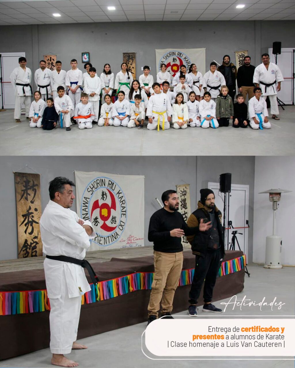Entrega de certificados y presentes a alumnos de Karate del Dojo Luis Van Cauteren en el Salón Anexo Municipal. Actividad en el marco de la clase anual conmemorativa por el aniversario del fallecimiento de Luis Van Cauteren, y en el mes de las infancias. Organizado por el Área de Cultura y la Municipalidad de Ballesteros.