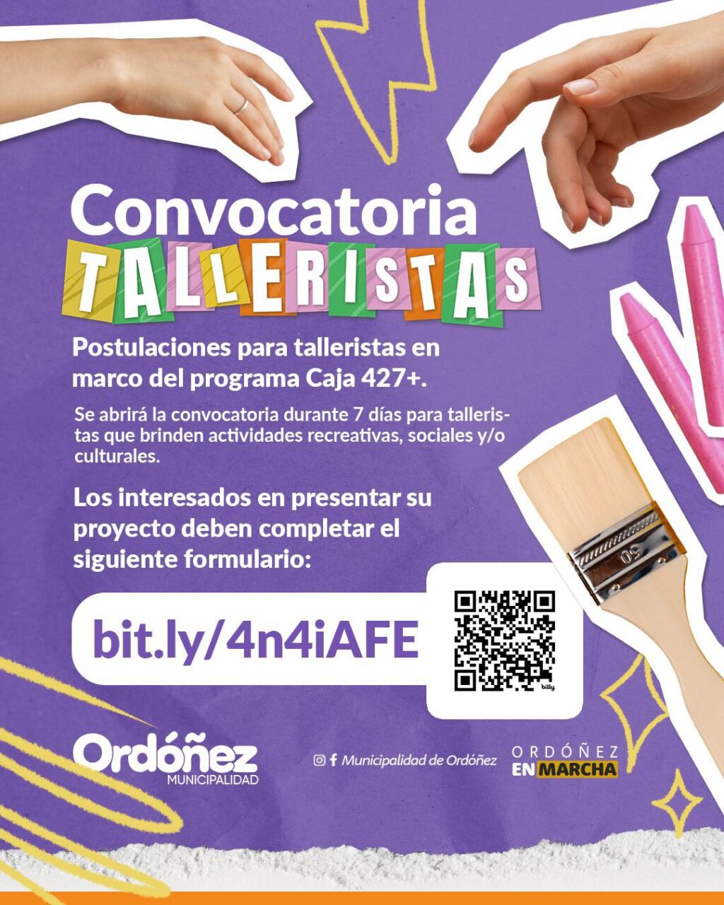 Se abren las postulaciones para talleristas que brinden actividades recreativas, sociales y/o culturales.