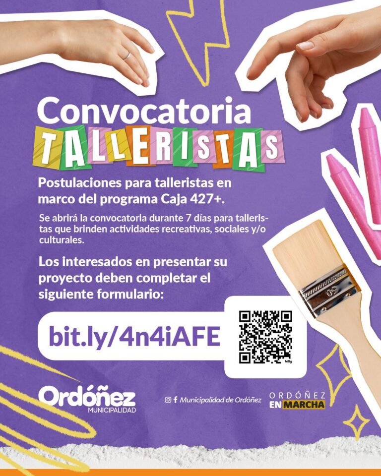 Convocatoria Talleristas Se abren las postulaciones para talleristas que brinden actividades recreativas, sociales y/o culturales. Los interesados en presentar su...