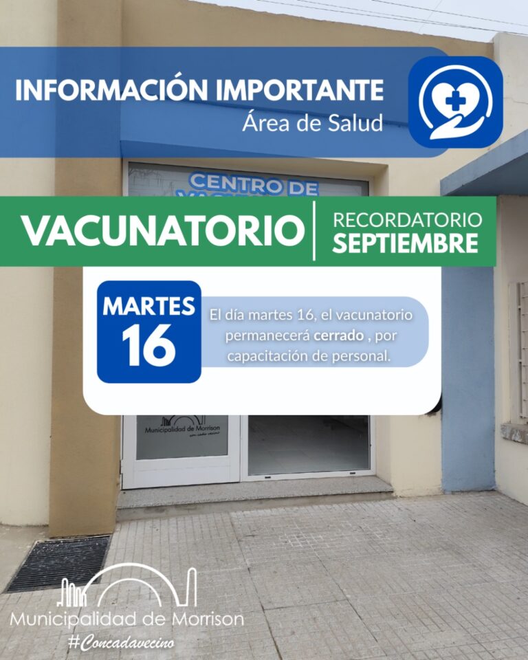 𝐈𝐍𝐅𝐎𝐑𝐌𝐀𝐂𝐈𝐎́𝐍 𝐈𝐌𝐏𝐎𝐑𝐓𝐀𝐍𝐓𝐄 – 𝐀́𝐑𝐄𝐀 𝐃𝐄 𝐒𝐀𝐋𝐔𝐃 La Municipalidad de Morrison informa a la comunidad que el día 𝐦𝐚𝐫𝐭𝐞𝐬 𝟏𝟔 𝐝𝐞...