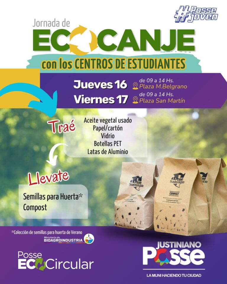 ECCANJE con los CENTROS DE ESTUDIANTES Tenes que traer: aceite vegetal usado, papel, cartón, vidrio, boetllas PET o latas de...