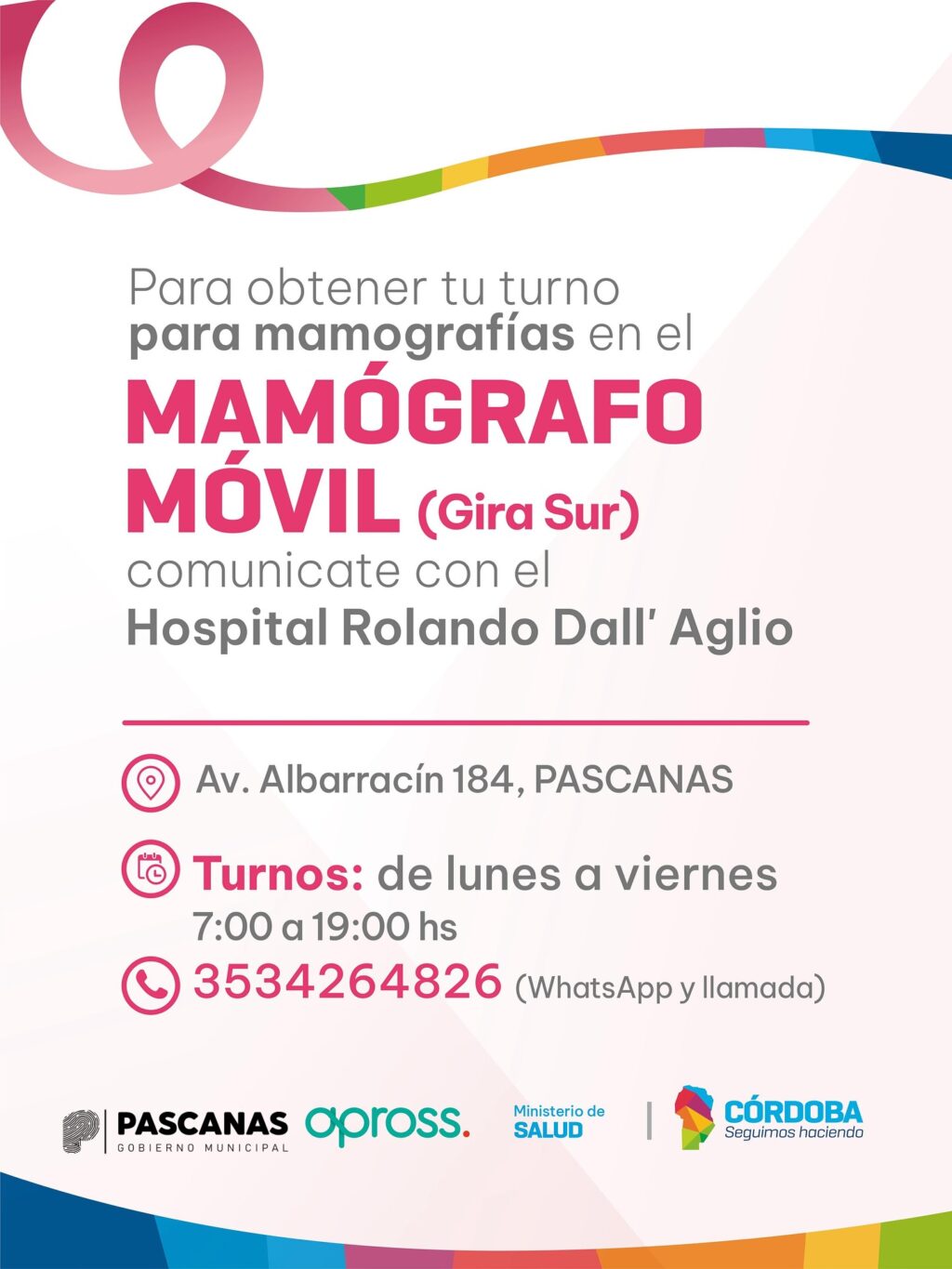 En el marco del 𝑶𝒄𝒕𝒖𝒃𝒓𝒆 𝑹𝒐𝒔𝒂, el mamógrafo móvil llega a Pascanas 💗