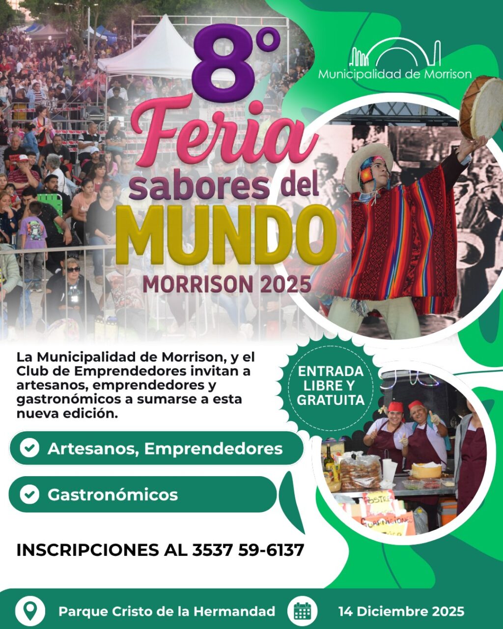 La 𝐌𝐮𝐧𝐢𝐜𝐢𝐩𝐚𝐥𝐢𝐝𝐚𝐝 𝐝𝐞 𝐌𝐨𝐫𝐫𝐢𝐬𝐨𝐧 informa que ya se trabaja en la organización de la 𝐅𝐞𝐫𝐢𝐚 𝐒𝐚𝐛𝐨𝐫𝐞𝐬 𝐝𝐞𝐥 𝐌𝐮𝐧𝐝𝐨 𝟐𝟎𝟐𝟓, uno de los eventos culturales y gastronómicos más importantes del sudeste cordobés.