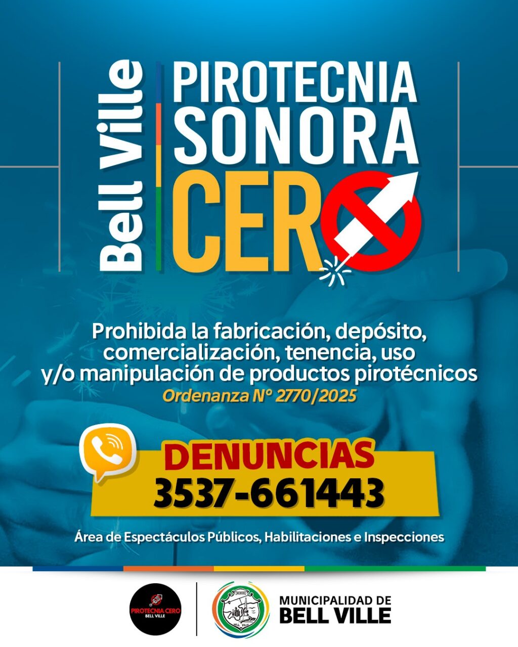 En nuestra ciudad está prohibida la fabricación, depósito, comercialización, tenencia, uso y/o manipulación de pirotecnia sonora.