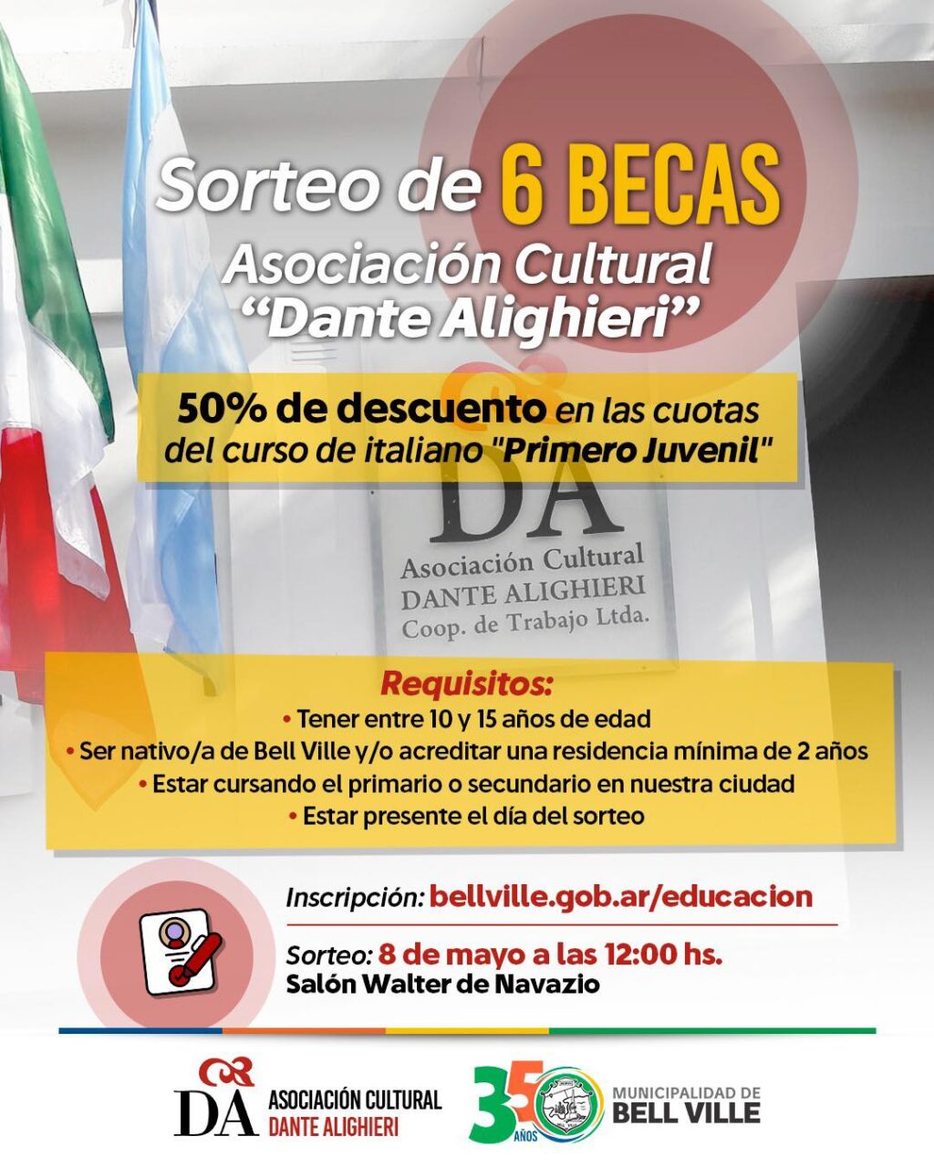 📚 Se extendió la inscripción para participar del sorteo de becas con un 50% de descuento para el curso “Primero Juvenil” de la Asociación Cultural Dante Alighieri.